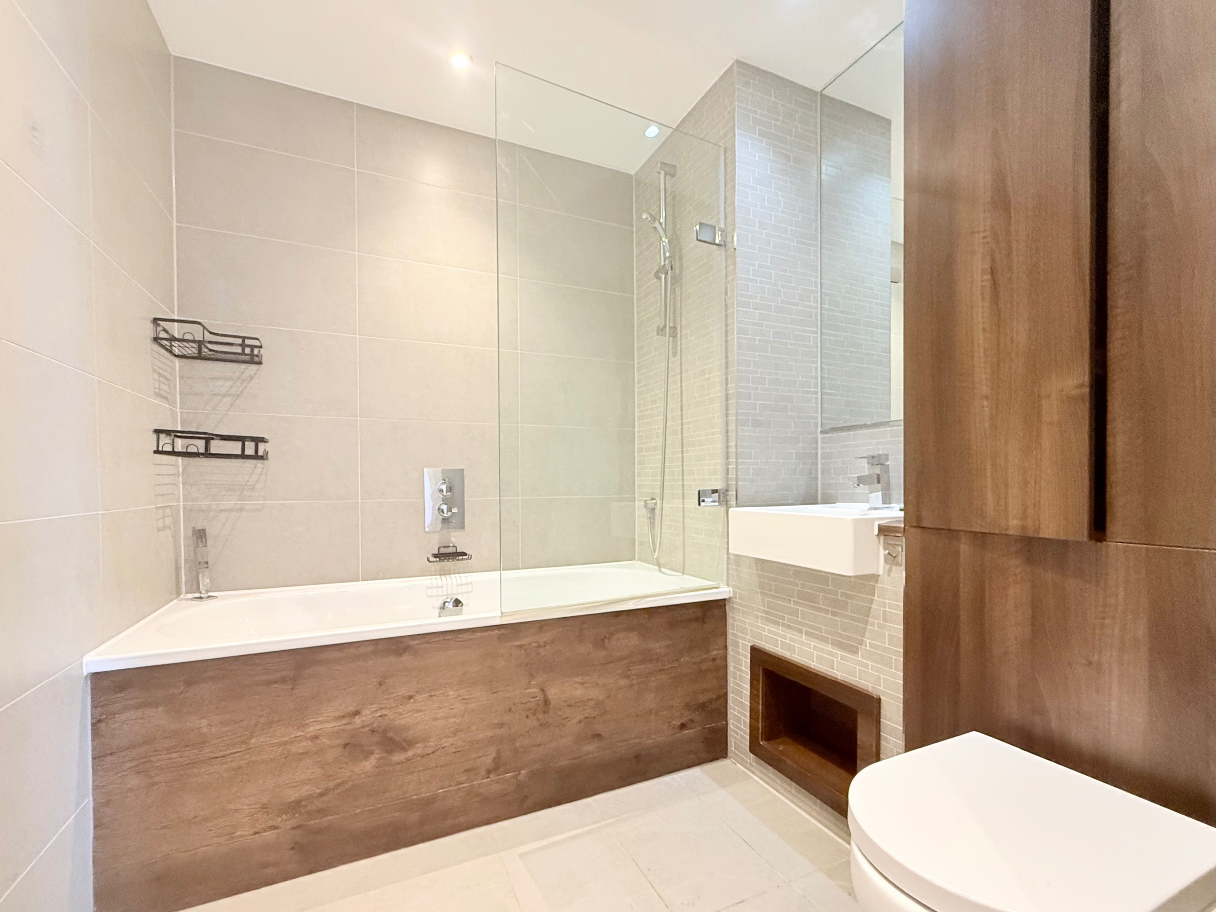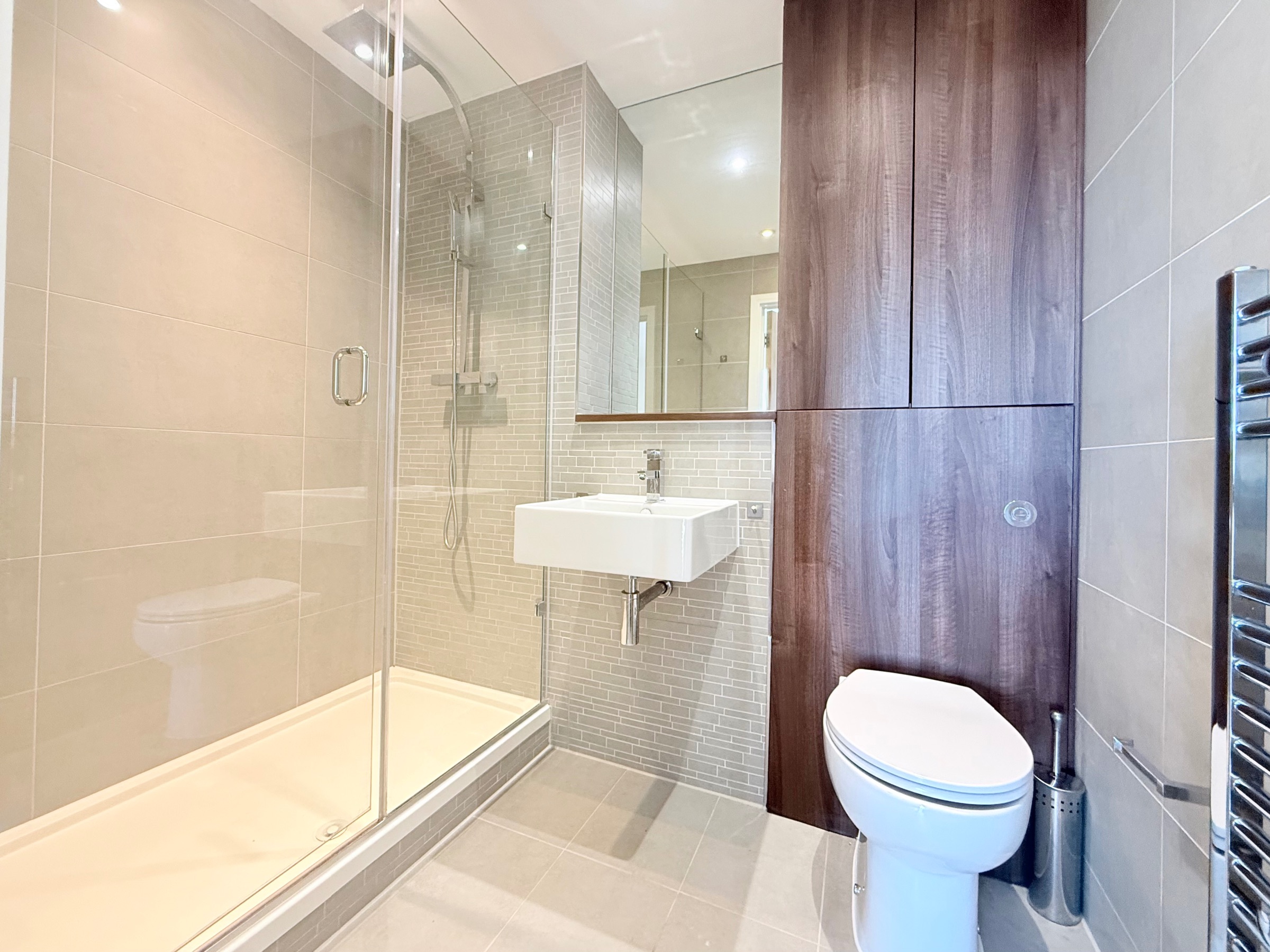 This modern and cosy 2-bedrooms with 2-bathrooms apartment comes unfurnished, the 2-bedroom would fit a single bed or a small double bed.