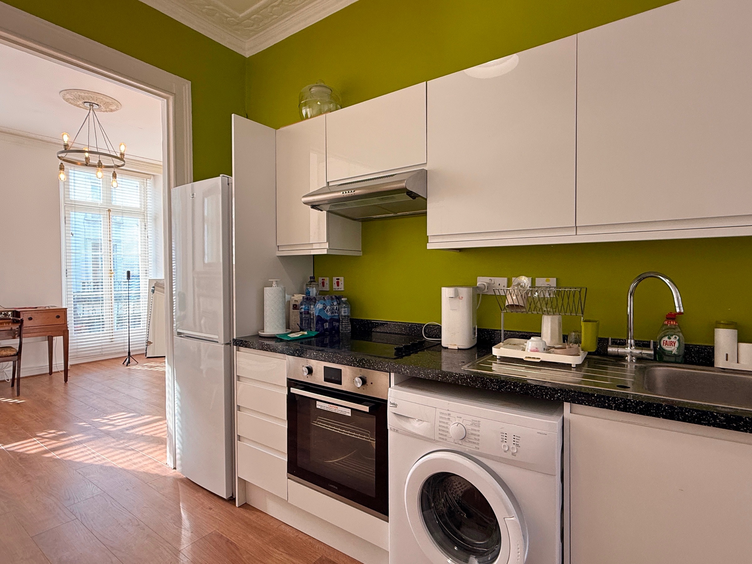 Positioned on the first floor, the apartment has plenty of natural light and is available to rent fully furnished.