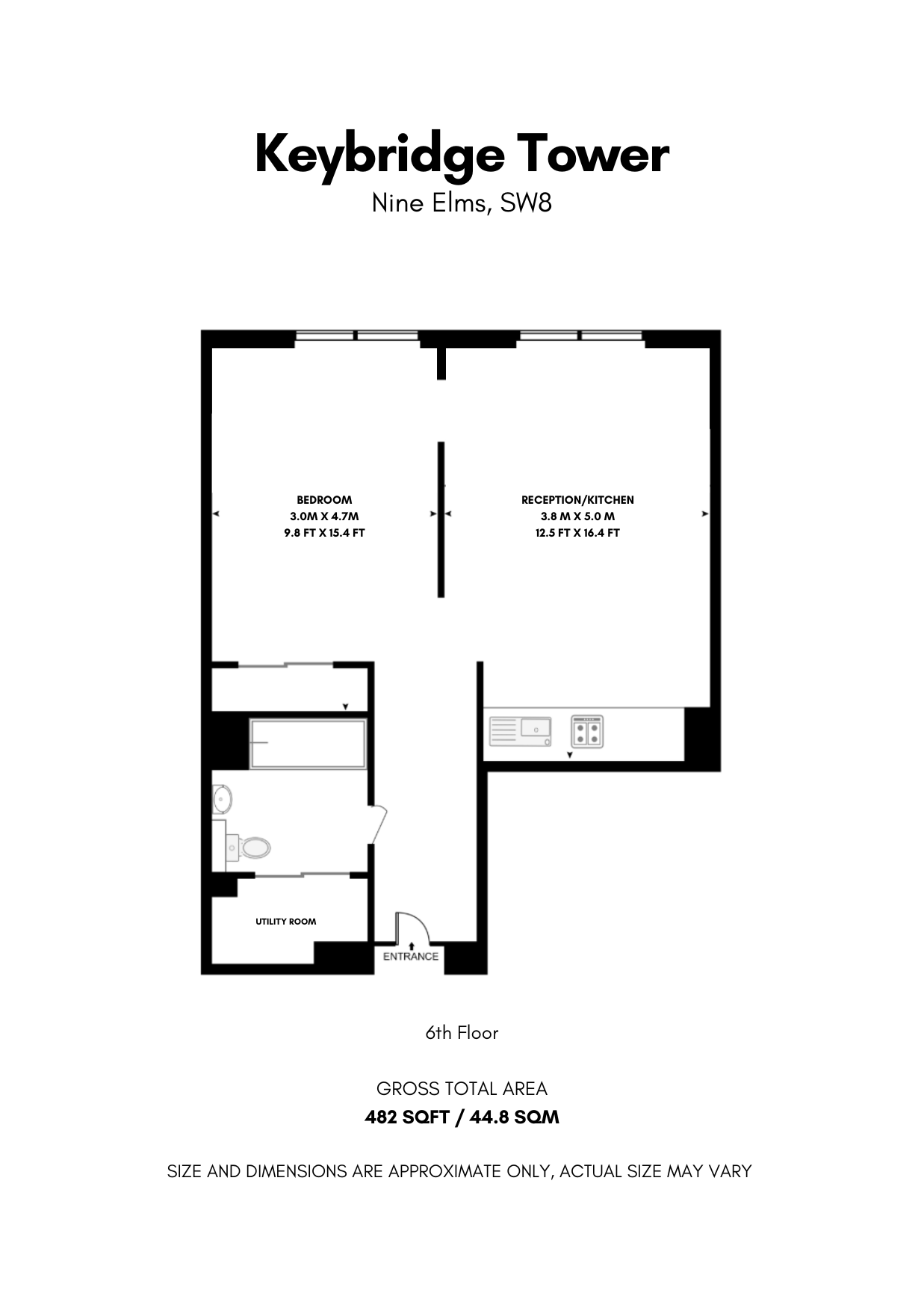 Keybridge Tower is ideally positioned just 1 minute walk to Nine Elms Tube station (Northern Line) and 7 minutes walk to Vauxhall Tube and National Rail stations. Daily essentials are covered with Sainsbury's supermarket, Waitrose, Starbucks and local cafes all within a few minutes' walk.